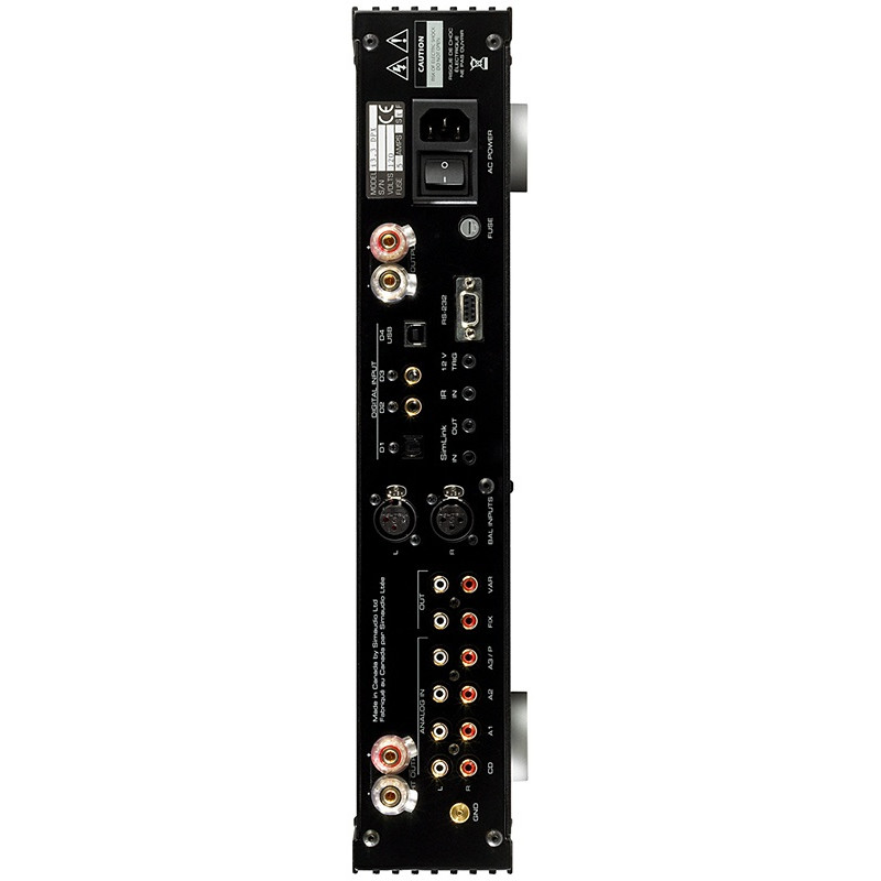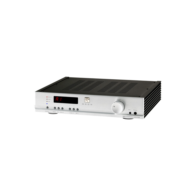 Ampificador Moon 340i. En este caso no estamos solo ante un amplificador mas potente que sus hermanos pequeños, los cambios internos son importantes en la fuente alimentación, opcionalmente puede incluir USB, entradas digitales con un DAC interno capaz de trabajar hasta 24 bits/192 Khz. y pre amplificador de fono MM/MC. Amplificador integrado 2x100W. Opcionalmente DAC con entradas digitales, USB y giradiscos MM/MC. Entradas RCA/XLR. 10 años garantía.