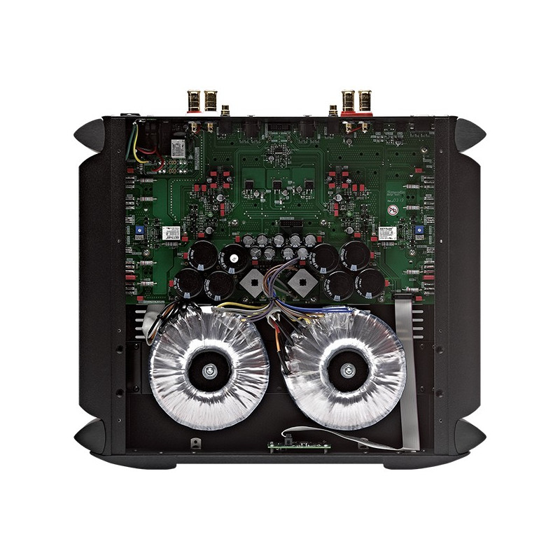 Fuente de alimentación dual-mono de gran tamaño con diseño de transformador toroidal propietario.