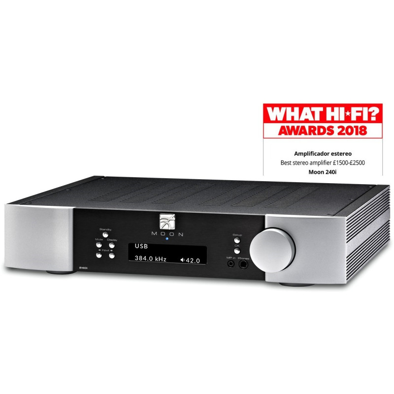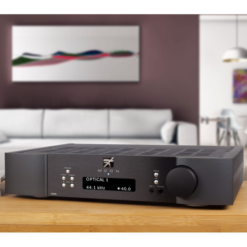 Moon Neo 240i amplificador 50 Watios RMS 8Ohmios | Entradas analógicas, phono tocadiscos, digitales óptica / coaxial / USB DAC. USB compatible con archivos DSD | Pantalla OLED | 10 AÑOS DE GARANTÍA