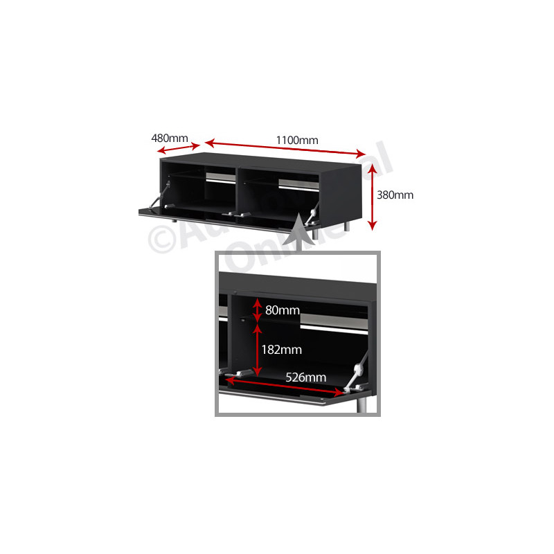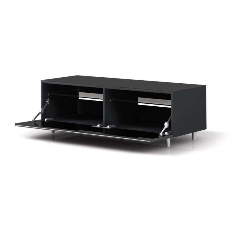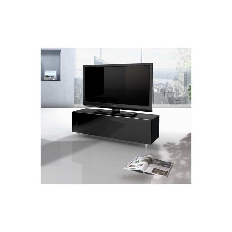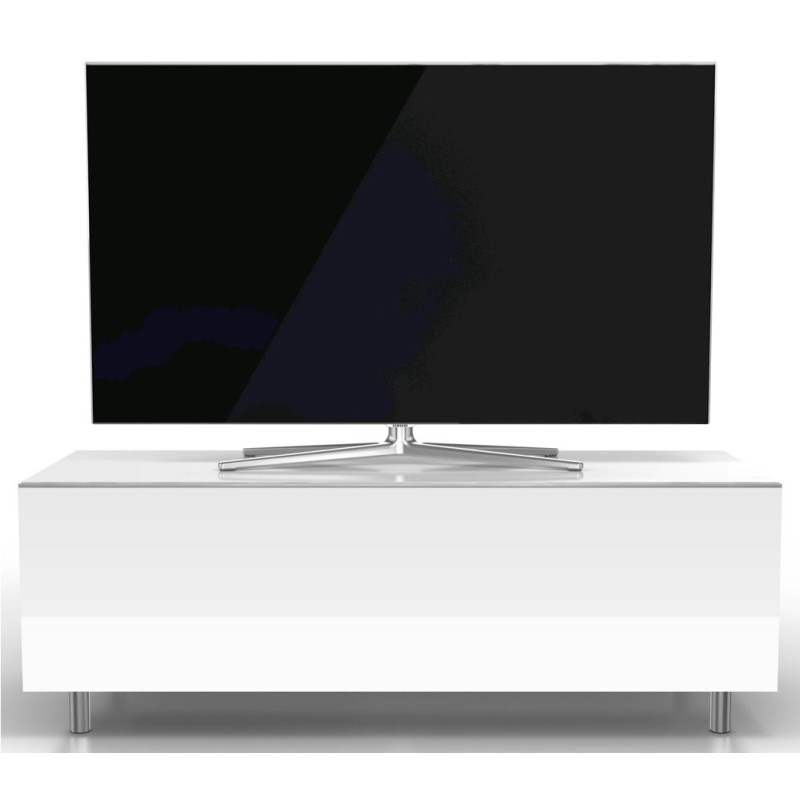 Mueble de televisión Just Racks JRL1100 con puerta abatible. Diseño atemporal en acabado lucido. Revistiminento de cristal anti-marcas. mueble de televisión con un ancho de 110 cms - tapa frontal abatible. En blanco o color negro