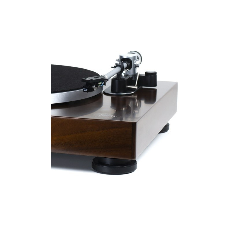 Inspirado por los giradiscos clásicos y fabricado con lo mejor de la tecnología actual, Music Hall Classic cuenta con un previo de phono integrado, cápsula, funcionamiento semi-automático (auto levantado y apagado automático) y acabado en barniz nogal oscuro.