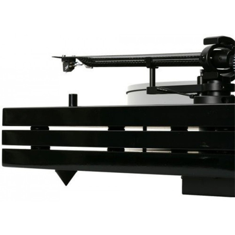 ▪ Motor DC de velocidades 33⅓ y 45 rpm completamente aislado y extraíble, con los controles de velocidad en la esquina delantera izquierda del giradiscos evitando que cualquier vibración potencial del motor o la correa afecte a la cápsula.
