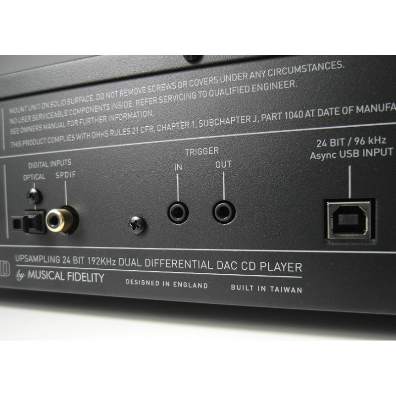 Musical Fidelity M3SCD Reproductor CD y Centro digital | DAC 24-bit Delta Sigma dual | Entradas: 1x RAC coaxial 32/192, 1x óptica asíncrono 24/96, 1x Trigger | Salidas: 1x RCA, 1x coaxial, 1x óptica, 1x Trigger 3.5mm