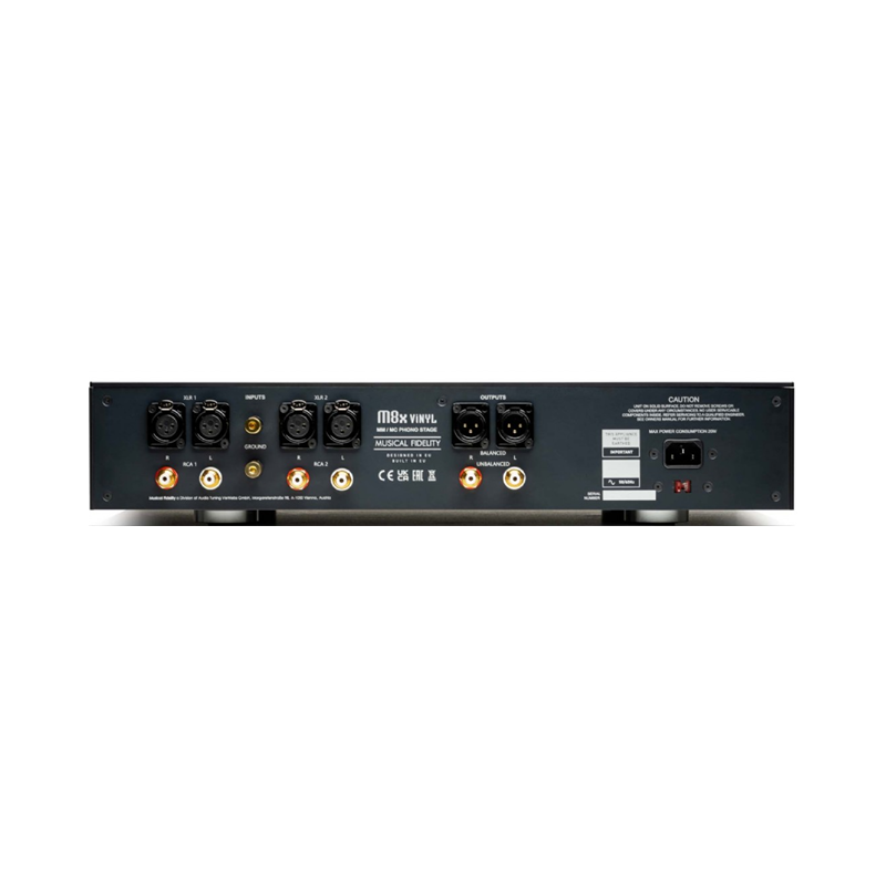 Musical Fidelity M8x VINYL previo de PHONO para tocadiscos | Diseño totalmente balanceado y discreto | Entradas: 2 entradas RCA no balanceadas, 2 entradas XLR balanceadas | Salidas: 1x salida RCA no balanceada, 1x salida XLR balanceada | Compatible con MM (40 dB) y MC (60 dB)