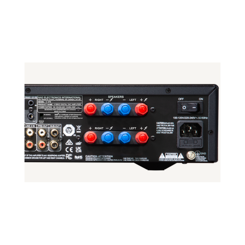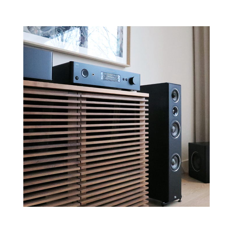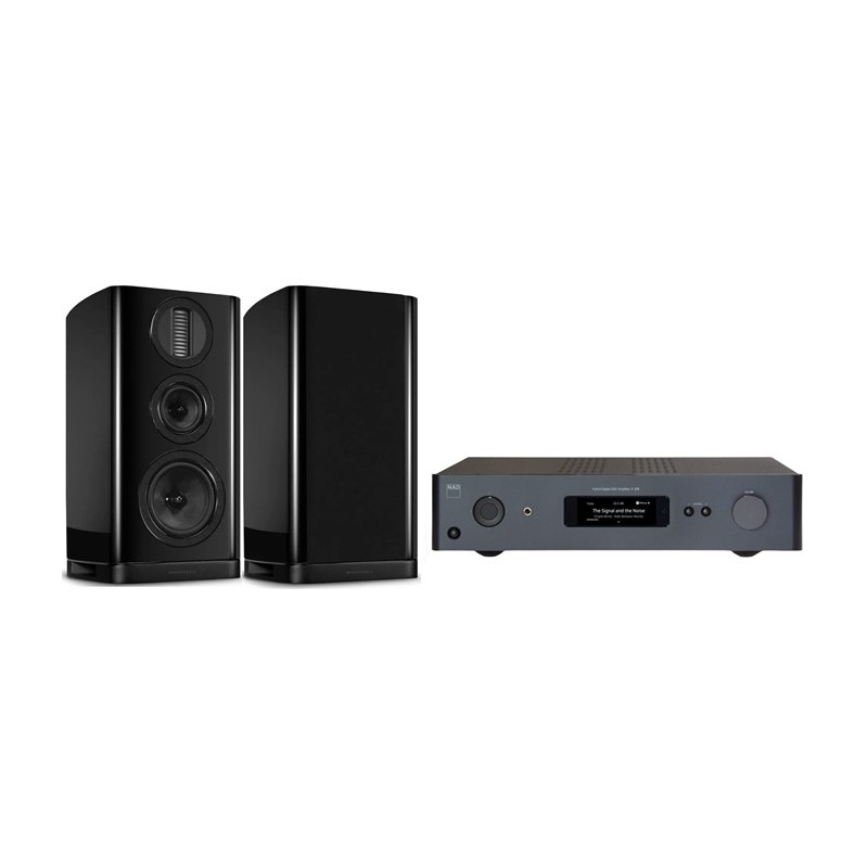 Conjunto formado por amplificador NAD C379 y altavoces Wharfedale Aura 2