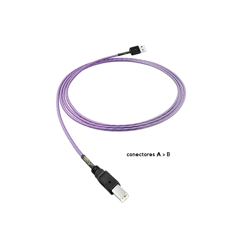 Purple Flare USB 2.0 cable de datos | 4 x 28 AWG | Material: OFC plateado trenzado al 99,9999% | Conectores con revestimiento metálico y totalmente apantallados | Terminación: USB 2.0 tipo A estándar a A estándar, B estándar, Micro-B (+20€) o Mini B (+20€)