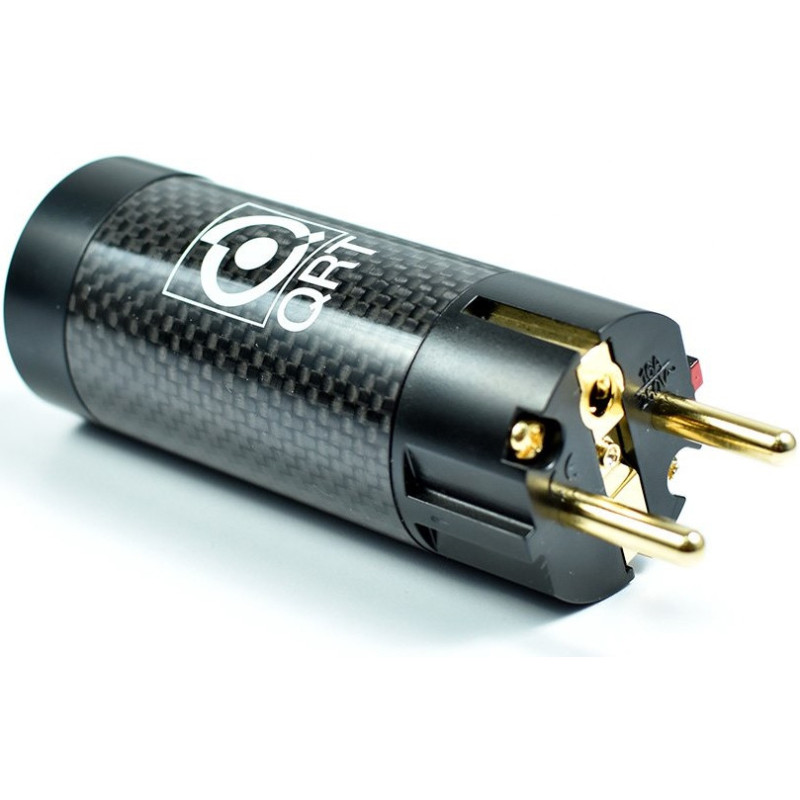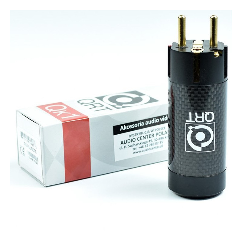 El QKOIL, o QK1, se sitúa dentro de una carcasa de fibra de carbono ajustada mecánicamente y está equipado con un conector para EE. UU. (NEMA) o para la UE (Schuko) con revestimiento de oro. Es compatible con voltajes de 110 V QKOIL: Potenciador de línea de CA a 240 V, y se puede utilizar con un adaptador Schuko/AUS o Schuko/RU si es necesario. Enchufe el QKOIL en cualquier enchufe libre de línea de CA de su sistema y experimentará de primera mano el sorprendente e indiscutible efecto que tendrá en sus componentes de A/V.