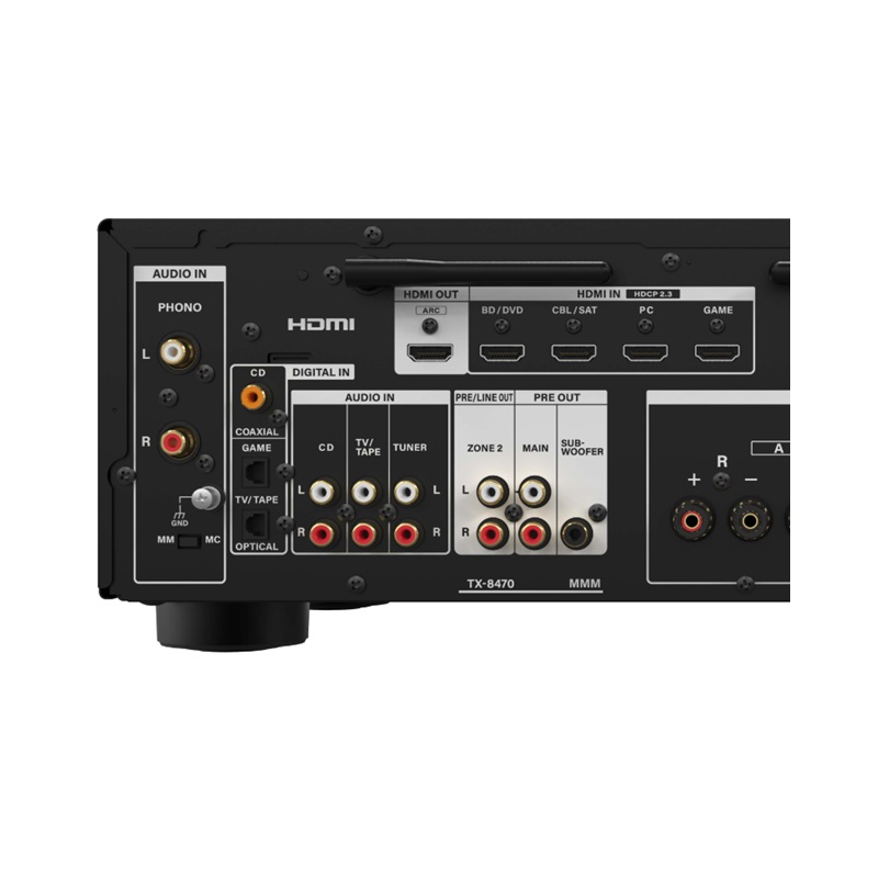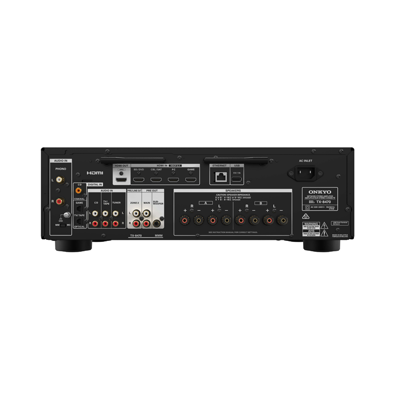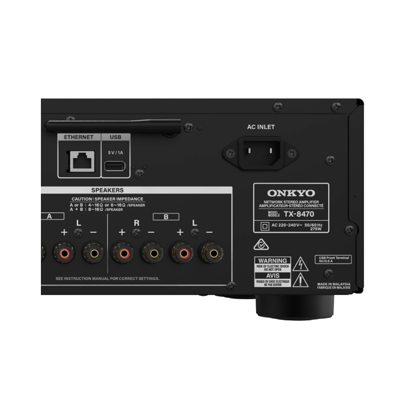 Onkyo TX-8470 receptor estéreo con funciones de red / Streamer (Spotify, Radio Internet, Tidal...) | Amplificador de clase G de alta corriente 2x 120W 8 ohmios | Conectividad AV compatible con HDMI 8K y ARC | Previo de Phono para tocadiscos | Sintonizador DAB+/FM