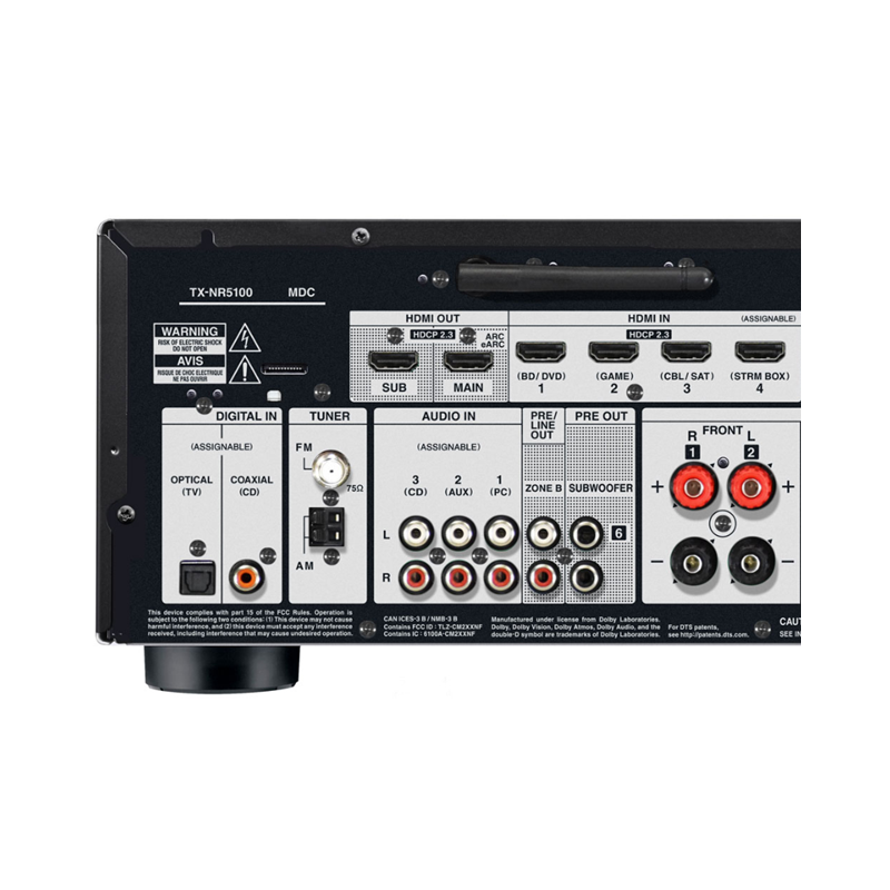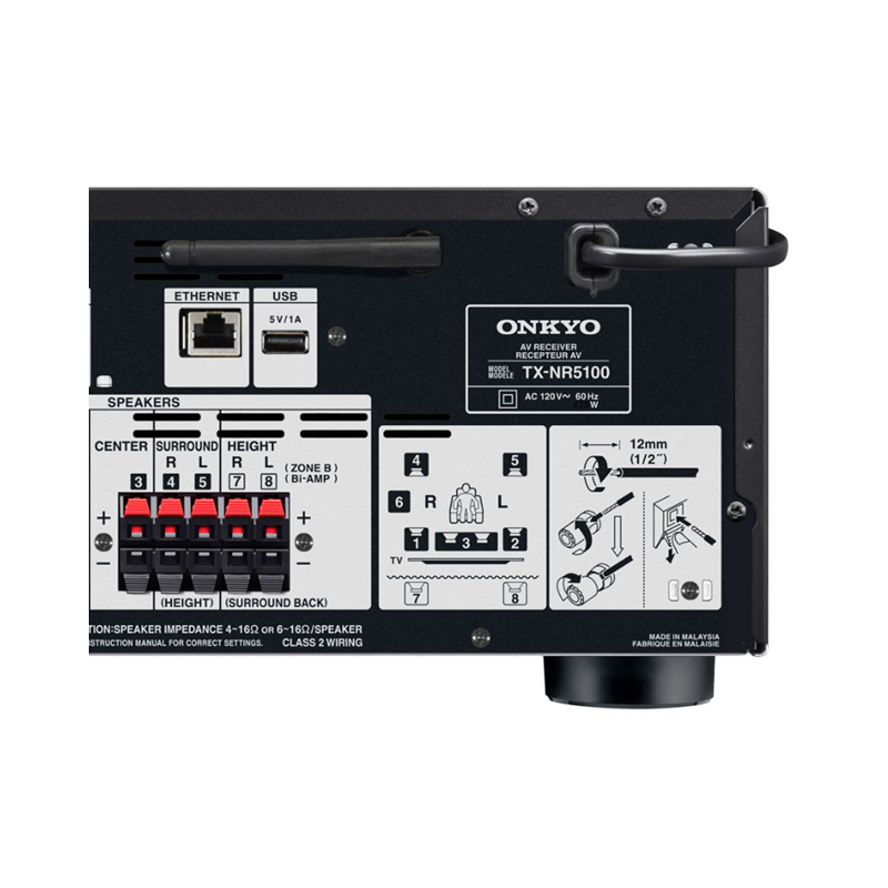 Onkyo TX-NR5100 - Receptor AV 7.2 | Potencia: 160W 3 ohmios, 120W 4 ohmios, 85W 8 ohmios | DIRAC Live® Room Correction y certificación THX | HDMI® 2.1 con 8K | Conmutación HDMI de Zona 2 discreta | Transmisión multizona y control por voz integrados | BLUETOOTH® bidireccional
