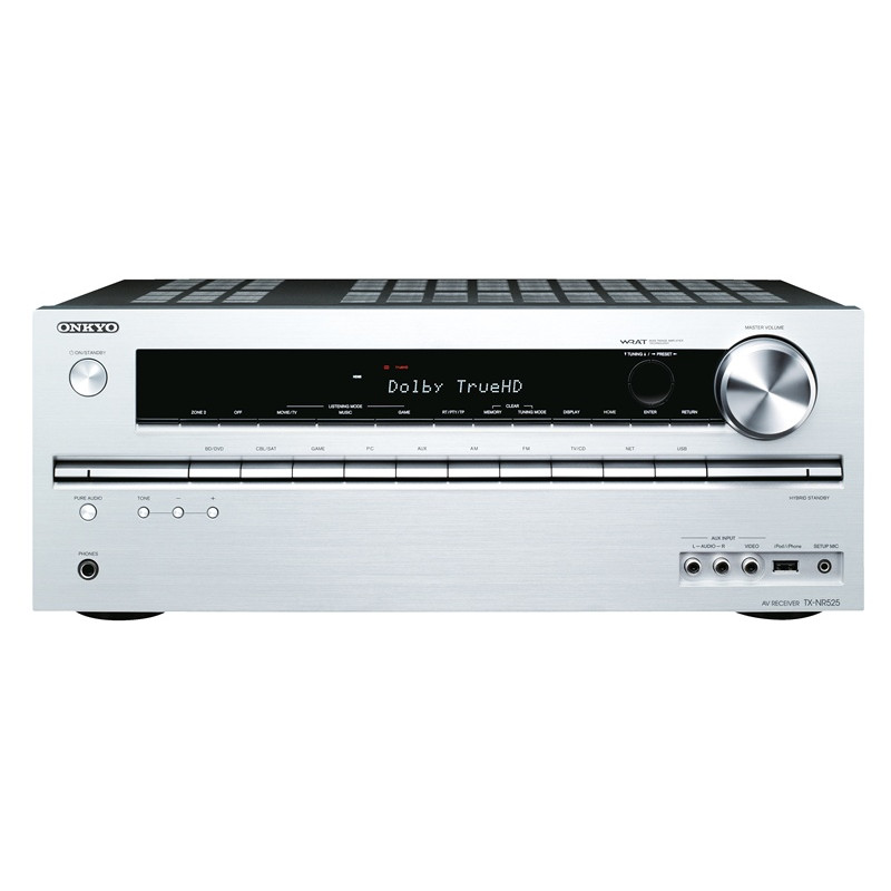Receptor Cine en Casa Onkyo TX-NR525. El nuevo NR525 es un producto diseñado para los que se inician en el mundo del Cine en Casa o para aquellos que no necesitan montones de prestaciones sofisticadas. Aun así este receptor está plagado de interesantes soluciones. De entrada es lo suficientemente potente para atreverse, no solo con altavoces tipo satélite sino con altavoces de tipo convencional, que entregan siempre más calidad de sonido. La conexión de Internet le permite enlazar con dispositivos móviles Smartphone, tanto Apple como Android, y escuchar la música que tenga en ellos. Así mismo por esta conexión podrá escuchar la radio de internet y el streaming de servicios como Spotify, Aupeo, Simfy o Last FM. Pero no acaba aquí, también le permitirá reproducir los contenidos que tenga en su ordenador o NAS.