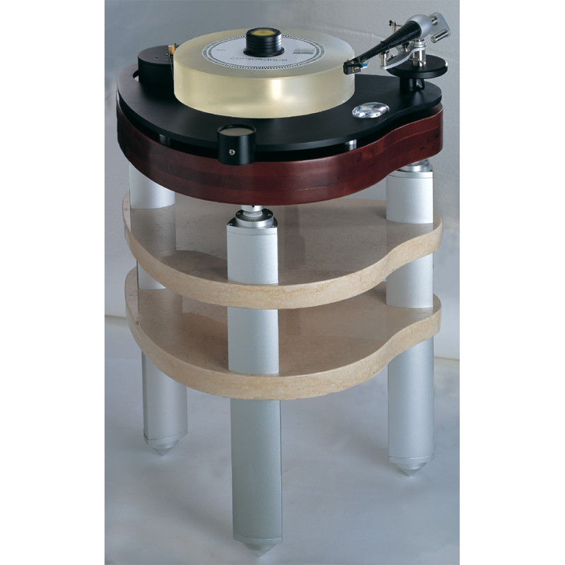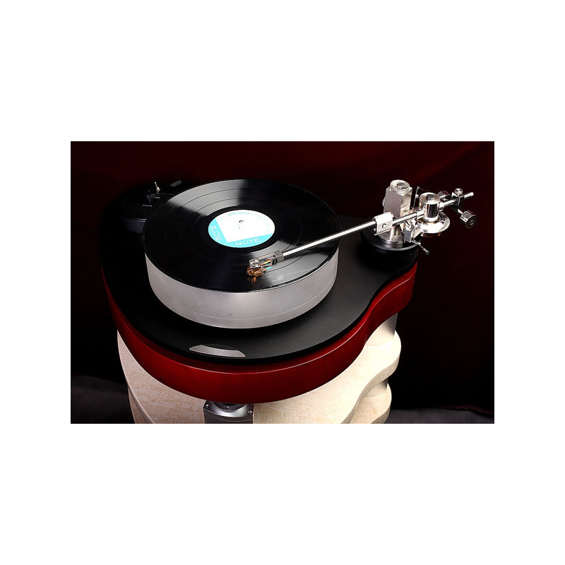 ather it is a 'system' consisting of turntable and stand, it is constructed from two slabs of polished pale marble separated by massive, triangular section, anodized-alloy columns - all tensioned by threaded rods running through the structure. The shape of the marble echo's the curves of the turntable, with the columns directly beneath the cones on the base of the turntable. We have done is kept the design relatively simple and followed well established 'best practice' - it is a conservative design. In essence it is a solid plinth design carrying a massive, tool-steel, inverted-bearing sleeve/shaft with a ceramic ball as the actual load bearing structure. Manual for Assembling the Turntable TECHNICAL SPECIFICATION Wow and Flutter: Less than 0.02 Rumble: Greater than 80dB down Speed accuracy: Within 0.01% Motor AC power connection : 220V-240V 50Hz /100V-120V 60Hz AC dependent on country. Features : Suspension: Mass-laoded on 3 point solid aluminum domes Plinth: One piece machined anodized aluminum. Platter: Machined 67mm acrylic contoured to match record surface (indent for record label) Bearing: Large diameter inverted fixed spindle with polished ceramic ball on teflon thrust plate. Motor: German manufactured precision hi torque AC motor with pulli(33+45rpm). Control: Power supply,speed concontrol (33+45rpm) with fine speed adjustment mounted off plinth in a separate chassis for complete decoupling of motor and bearing vibrations. Drive: Mono filament, non clastic drive belt. Tonearm: 1 tonearms available only. - The German AC motor lives in a separate housing which then sits on a cork base within the wooden section of the plinth. - The main bearing and mounting board of the arm is rigidly linked. Both are bolted to a 1 cm thick alloy plate which sits via three alloy cylinders onto the wooden part of the plinth. - The drive is taken via a fishing-line, nylon thread . - The Morch line of tonearms are made in Denmark, and are fine examples of high technical standards and attractive styling in the tonearm industry. For 25 years, Morch has been experimenting with all types of tonearms in order to gain greater insight into the tonearm interface.