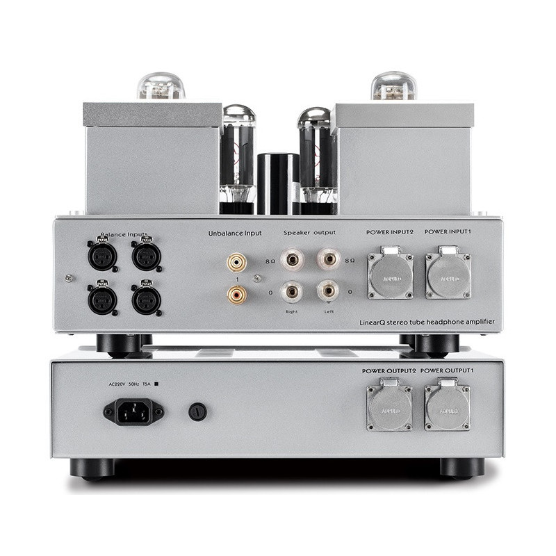 LinearQ es un amplificador de auriculares de tubo con cuatro canales de amplificación push-pull totalmente balanceados. Utiliza un tubo 2A3 de calentamiento directo para trabajar en un estado de push-pull. A partir de la señal, toda la línea se equilibra y amplifica. Es una transmisión balanceada que asegura la minuciosidad. La transmisión de información con bajas pérdidas, y a través del transformador de salida especialmente diseñado para el auricular, asegura una buena adaptación de impedancia cuando se conducen varios tipos de auriculares, y conduce los auriculares de varias marcas en el mercado sin ninguna carga. Se dispone de un conjunto de terminales de salida de altavoces para su uso con altavoces de alta sensibilidad como amplificador combinado de alta calidad.