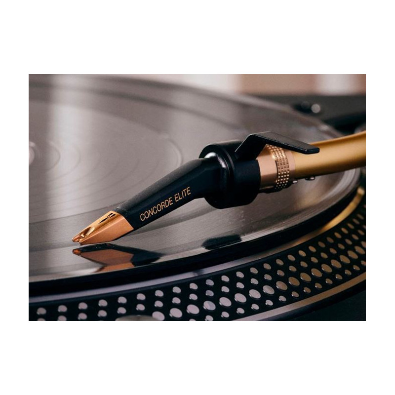 El Concorde Elite cuenta con un nuevo cuerpo de aguja moldeado de forma especial con un revestimiento de oro auténtico, que añade lujo al famoso diseño del Concorde. Dentro del oro se encuentra un diamante elíptico Nude montado en un cantilever rígido de aluminio. La aguja de diamante Nude Elliptical, que normalmente se utiliza en los cartuchos de HiFi, ofrece un sonido tan potente y detallado, que experimentará un nivel notable de rendimiento en vivo. La adición de un diamante Nude Elliptical permite una masa móvil más pequeña, lo que garantiza una calidad de sonido mejorada y detallada. El delgado perfil del diamante Nude Elliptical hace que pueda seguir las oscilaciones del surco con mayor precisión, extraer detalles más intrincados y rastrear incluso la información de mayor frecuencia.