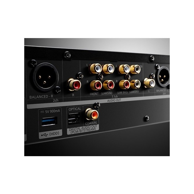 La salida de 2 canales y la de 7.1 canales están separadas. Además, la salida de 2 canales está equipada con un conector de salida XLR balanceado, además del conector RCA.