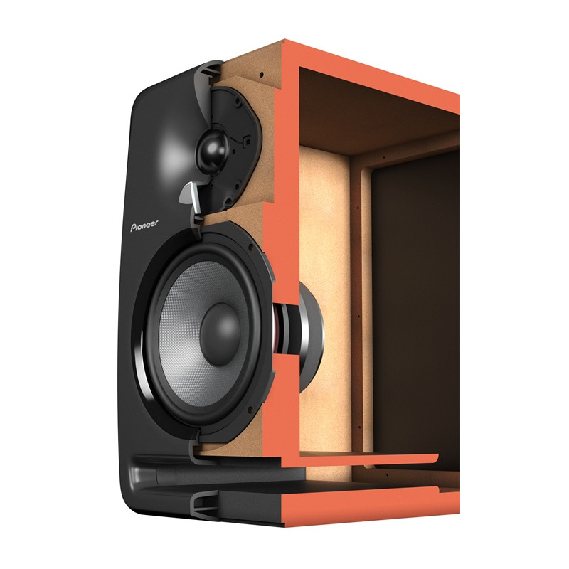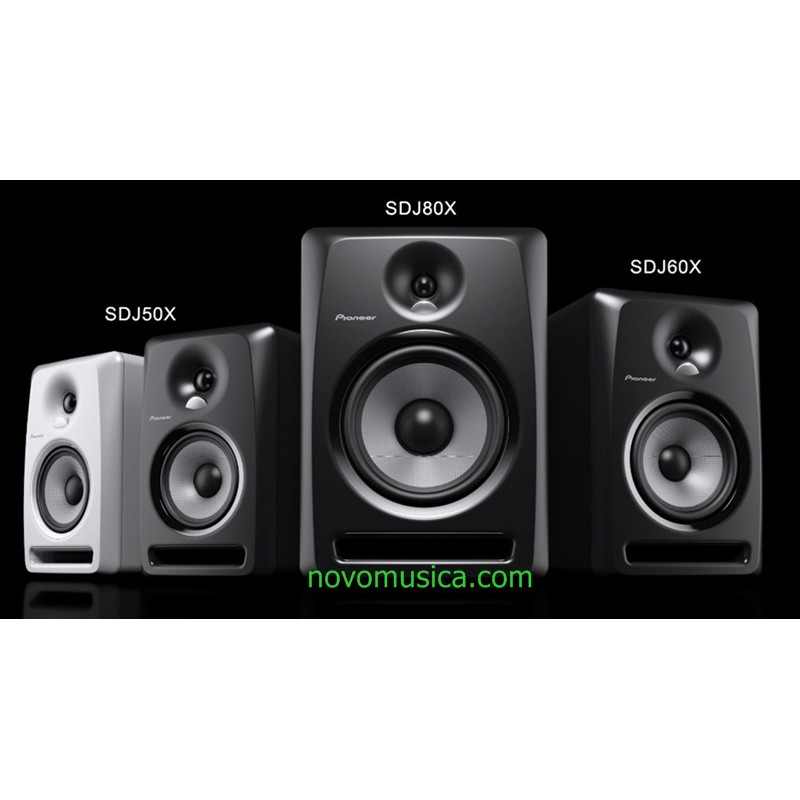 Altavoces Pioneer S-DJ50X W, precio la pareja.. Estos son los altavoces activos más pequeños de la nueva serie S-DJ orientada principalmente para la práctica privada de los DJ´S. Este modelo está construido con un material de media densidad y alta rigidez que ayuda a proporcionar un grave profundo y poderoso. Es un sistema activo (en el interior incorpora los amplificadores para graves y agudos), bass réflex frontal de dos vías. El altavoz de graves de 5” está construido con una mezcla de fibras aramidas y tiene su propio amplificador de 30w RMS. Utiliza para incrementar las frecuencias bajas un original puerto réflex frontal rectangular.