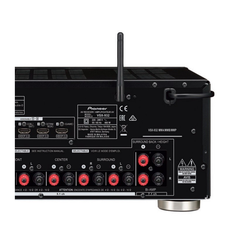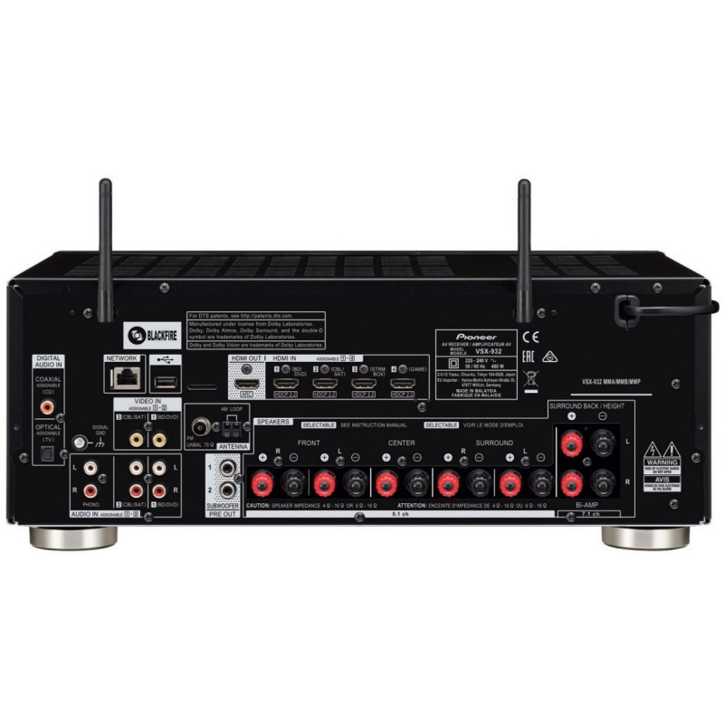 El Pioneer VSX-932 saca a relucir toda la emoción de todo lo que ves y escuchas, con DTS: X? y Dolby Atmos® que incluye el optimizador Reflex Optimizer para altavoces compatibles con Atmos, vídeo Ultra HD, HDR10 y Dolby Vision. Transmite música a cualquier habitación con FireConnect?, Chromecast incorporado y DTS Play-Fi®. Escuche una multitud de canciones a través de la radio por Internet y los servicios de streaming de red, con un control suave en la aplicación Pioneer Remote App. Incluso se puede conectar un tocadiscos a través de la entrada phono.