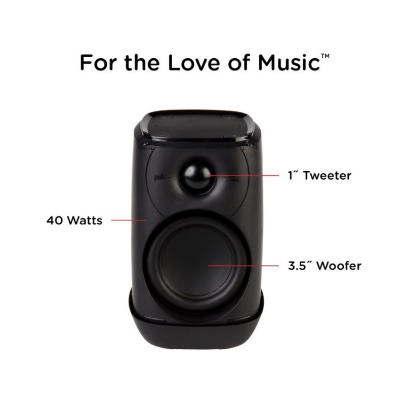 Por amor a musica Polk diseñó el tweeter, el woofer y el amplificador para ofrecer un increíble relleno de espacio desde su aplicación musical favorita.