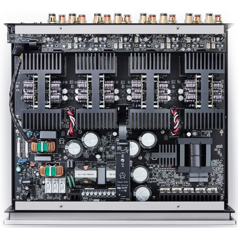 El ingenioso diseño del diseño del circuito A35.8 proporciona la entrega más directa y la distribución uniforme de energía desde la fuente de alimentación a los módulos de amplificación metidos en disipadores de calor que los aíslan de cualquier ruido de la fuente de alimentación. A su vez, esta construcción innovadora aísla la etapa de entrada y salida de cualquier ruido que puedan producir los módulos de amplificación. Las señales de entrada y salida se entregan hacia y desde el módulo amplificador a través de una cinta ininterrumpida de placa de circuito enhebrada a través de un canal en los disipadores de calor para la ruta de señal más corta posible.