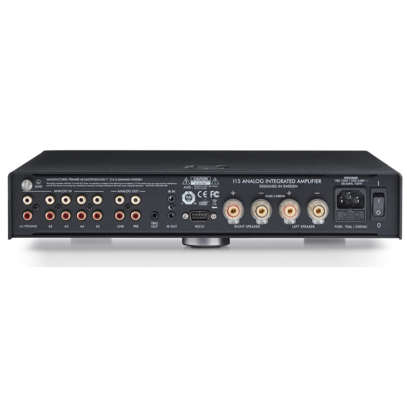 Primare I15 es un amplificador integrado totalmente analógico, con 60 vatios de potencia por canal, y un módulo opcional de preamplificador de fono de imán móvil disponible para su instalación en cualquier momento. El I15 continúa con la tradición de Primare de ofrecer un rendimiento asombroso gracias a sus amplificadores integrados compactos y elegantes que facilitan su instalación en prácticamente cualquier entorno de vida.