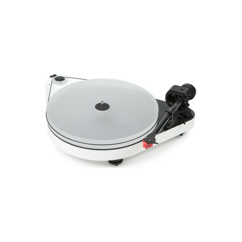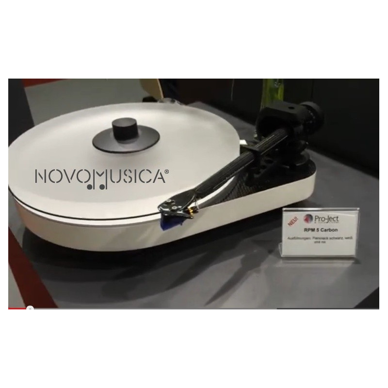 El RPM 5.1 ha sido durante mucho tiempo uno de los mejores giradiscos, en su banda de precio, del mercado. La verdad es que no ha sufrido muchos cambios durante su larga vida, alguno en el motor, en el eje de giro y en el brazo. Ahora Project ha decidido hacer algunos cambios, y sobre todo muy orientados hacia la calidad de sonido. La parte frívola es que ahora el RPM 5 Carbon está disponible en tres colores, blanco, rojo y negro. Pero en la novomusica parte estética también han introducido algo que mejora mucho la calidad de sonido, un recubrimiento de fibra de carbono en la superficie del chasis para dar mayor rigidez al mismo, sin añadir peso ni aumentar la frecuencia de resonancia. El “platter” ahora es de un material acrílico que le da un toque muy “cool” al resultado final, a la vez que al ser más pesado que el “platter” antiguo tiene una inercia mayor y así consigue mejor estabilidad de giro.