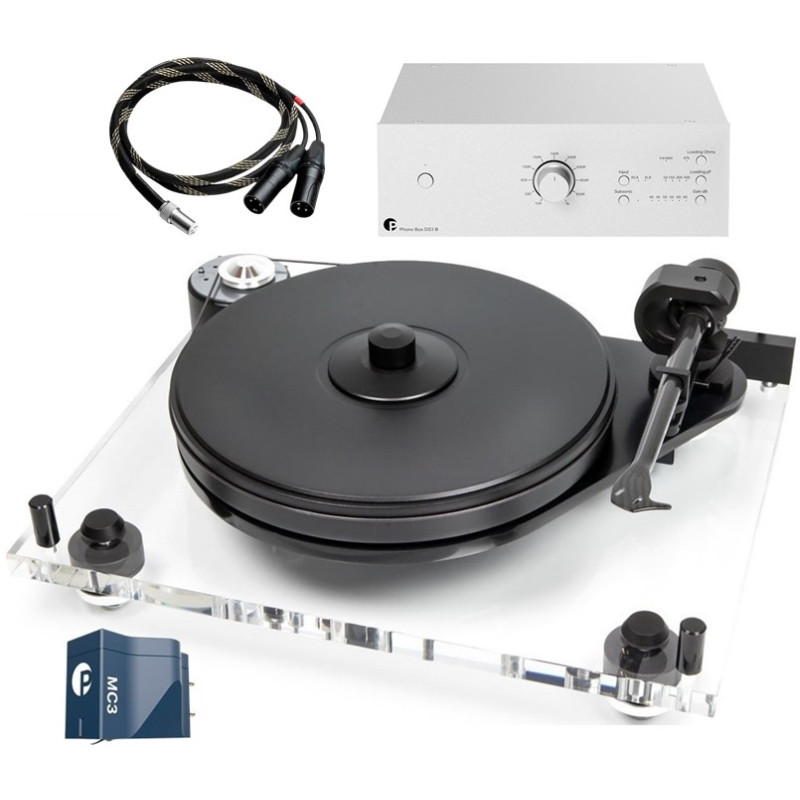 Conjunto formado por tocadiscos Project 6Perspex Balanced MC3 + Project Phono Box DS3 B + cable balanceado Project Connect IT Phono DS 5P XLR