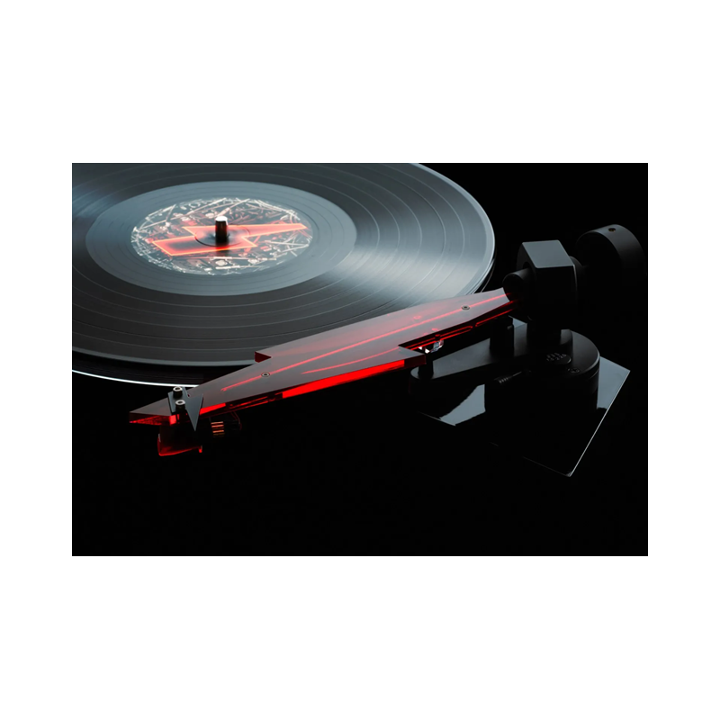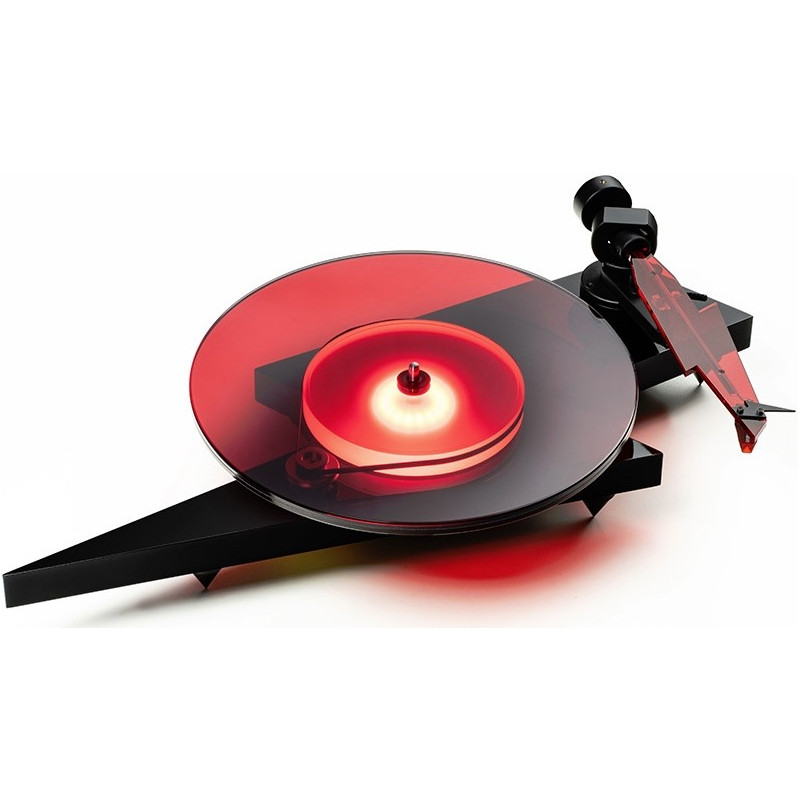 Project AC/DC Turntable - tocadiscos manual de tracción por correa | Zócalo MDF, plato de cristal, iluminación inferior roja | Velocidad 33/45 | Cápsula 2MRed