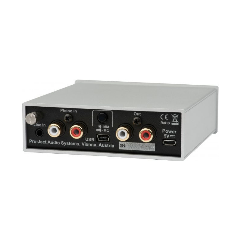 Project AD Box S2 Phono previo de FONO con salida analógica estéreo (convencional) y salida Digital USB para poder digitalizar los vinilos a un ordenador | Carcasa de Aluminio | Compatible con cápsulas MM y MC | Entrada de línea
