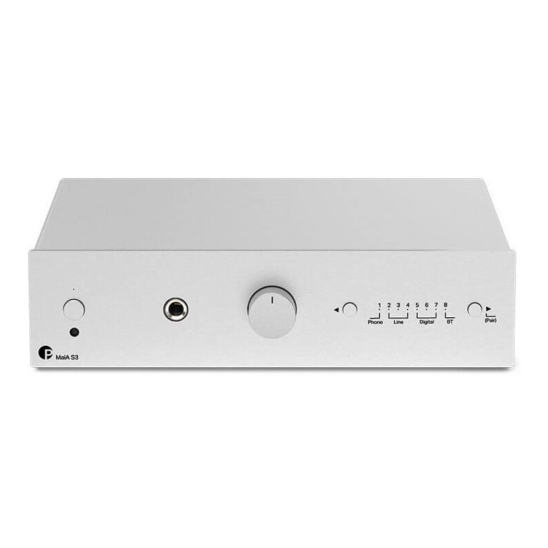 Project Maia S3 - Amplificador 2 x40 Watios | 8 entradas (5x analógicas, 3x digitales y 1x BT sin cables) | Bluetooth 5.0 - aptX HD (24 bits, hasta 48kHz) | Entrada Phono MM y MC | DAC Cirrus Logic CS4344 24bit/192kHz Multi-bit Delta Sigma | Salida de auriculares en jack de 6,3 mm | Mando a distancia incluido