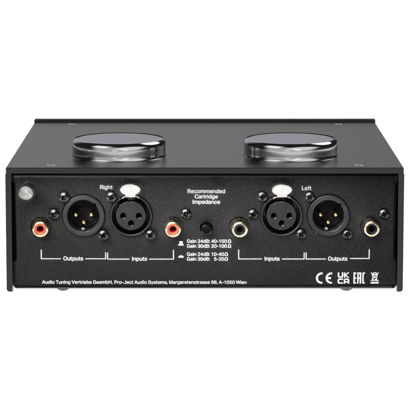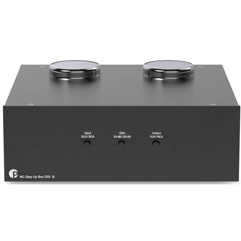 Un transformador elevador “premium” con arquitectura doble monofónica destinado a cápsulas de bobina móvil (MC), que exhibe unos niveles de ruido y de distorsión muy bajos, lo que a su vez tiene como resultado un sonido más dinámico y natural. Para conseguir este objetivo, su interior alberga dos transformadores LL1678 rubricados por la muy purista firma sueca Lundahl con relación de transformación que puede seleccionarse entre 24 dB o 30 dB con la simple pulsación de un botón. A ello hay que sumar una funcionalidad que Pro-Ject está incorporando en un número creciente de sus modelos relacionados con la reproducción de discos de vinilo: la conexión balanceada, como indica la “B” de su nombre, materializada en la presencia de entradas y salidas con conectores XLR. De este modo, el MC Step Up Box DS3 B, cuyo elegante diseño y robusta construcción lo convierten en un producto para durar toda la vida, se beneficia no sólo de una reducción adicional del ruido, sino también de una transmisión de señal libre de interferencias.