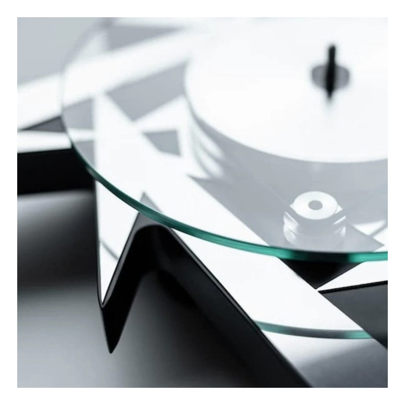 El plato de cristal es un diseño pesado y de resonancia cero. La gran masa del plato produce las velocidades de reproducción más ajustadas y precisas y, al mismo tiempo, permite ver el impresionante giradiscos y todas sus piezas de alta calidad y su increíble calidad de construcción, evitando los defectos de la construcción de plástico o ligera.