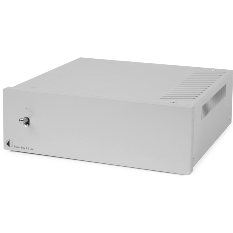 Presentada en un cuidado recinto de construcción enteramente metálica, la Power Box RS Uni 1-Way TT es una fuente de alimentación lineal compatible con todos los giradiscos Pro-Ject equipados con adaptadores de 15 V continuos, protagonizada por un transformador toroidal de grandes dimensiones diseñado específicamente para aplicaciones de audio. Una de las principales características del citado transformador es que su reserva de potencia es muy superior a la del alimentador/adaptador estándar suministrado de serie con los giradiscos Pro-Ject. Asimismo, su impedancia de salida es muy baja, a la vez que, en combinación con una capacidad de filtrado de grandes dimensiones basada en condensadores de baja resistencia serie equivalente (ESR), le permite gestionar fácilmente cualquier necesidad en materia de alimentación, con lo que ello implica, por ejemplo, en reducción del ruido de fondo y, consecuentemente, en mejora de la reproducción de los contrastes dinámicos y los microdetalles. De la Power Box RS Uni 1-Way TT hay que señalar también que incluye un sistema de arranque suave para evitar la irrupción de picos de corriente en el devanado primario del transformador, así como una circuitería de rectificación de tensión de alta precisión en el devanado secundario.