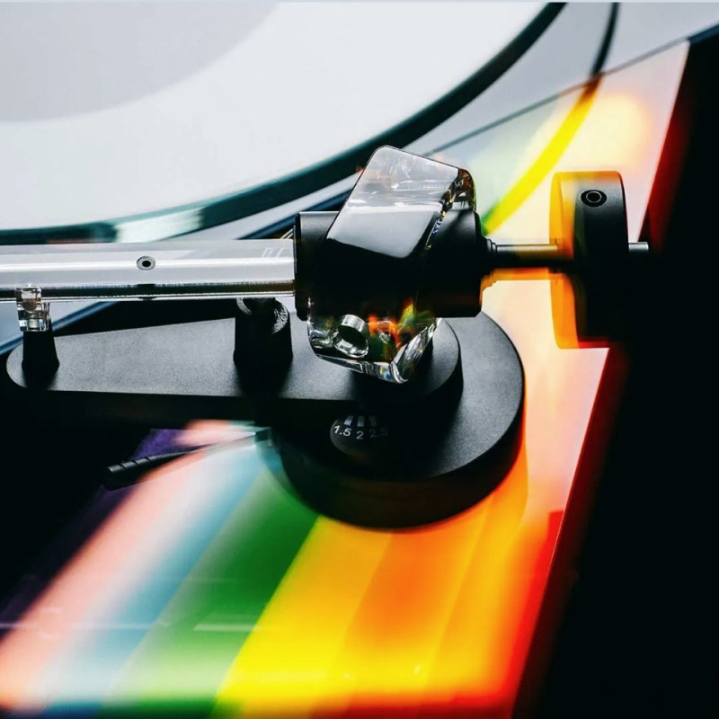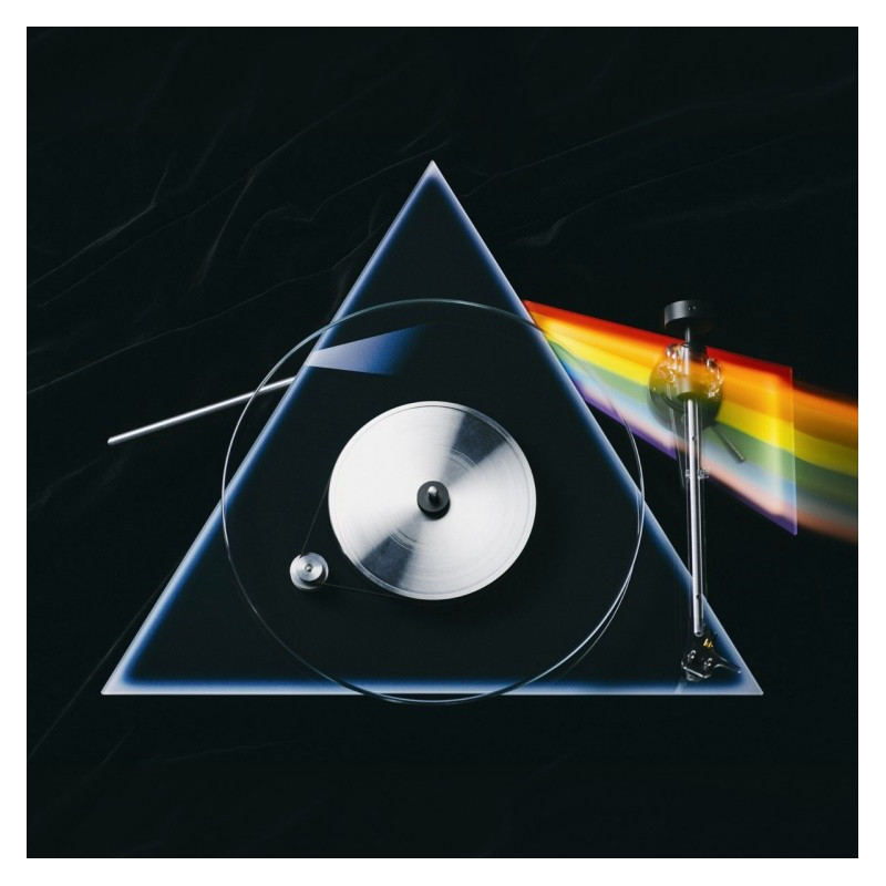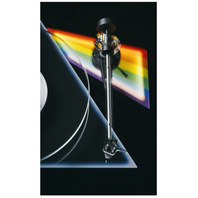Project The Dark Side Of The Moon - Tocadiscos que celebra el 50 aniversario del disco de Pink Floyd | Chasis MDF de 28mm de grosor | Brazo acrílico de 8,6" con muelle antiskating | Retroiluminación LED de arco iris regulable | Interruptor de velocidad de diseño especial | Control electrónico de velocidad | Platter pesado realizado en cristal de 10mm de grosor | Subplater de aluminio de precisión | Incluye montada de fábrica la cápsula Pick it PRO