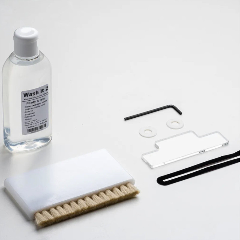 Para conseguir una limpieza perfecta, también necesitamos un líquido de limpieza adecuado. Los líquidos de limpieza alcohólicos pueden destruir la microinformación musical de los surcos. Esa es la razón por la que hemos diseñado nuestro nuevo líquido limpiador ecológico sin alcohol llamado "Wash it 2". Nuestro nuevo Wash it 2 es un líquido premezclado, por lo que ya no tendrá que diluir el concentrado usted mismo. Esto evita el uso accidental de agua del grifo inadecuada para la mezcla. Con Wash it 2 podemos optimizar de nuevo el rendimiento de limpieza. El VC-E2 es muy potente y limpia los discos completamente en una o dos revoluciones.