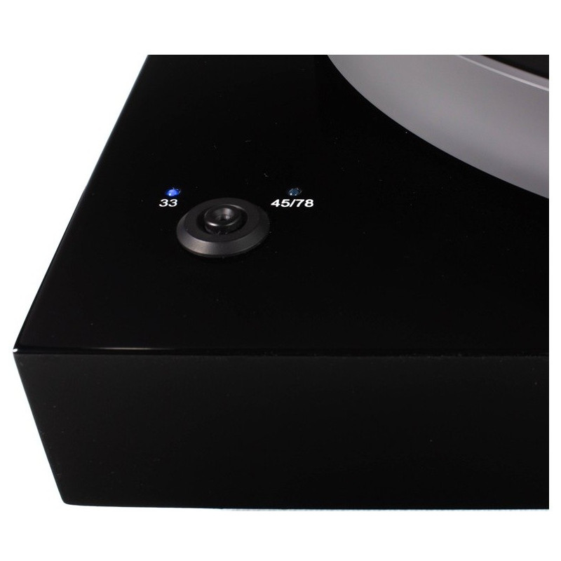 Control electrónico de velocidad con cambio de velocidad de 33/45 rpm, que actúa como "Speed Box" con la máxima estabilidad de velocidad.