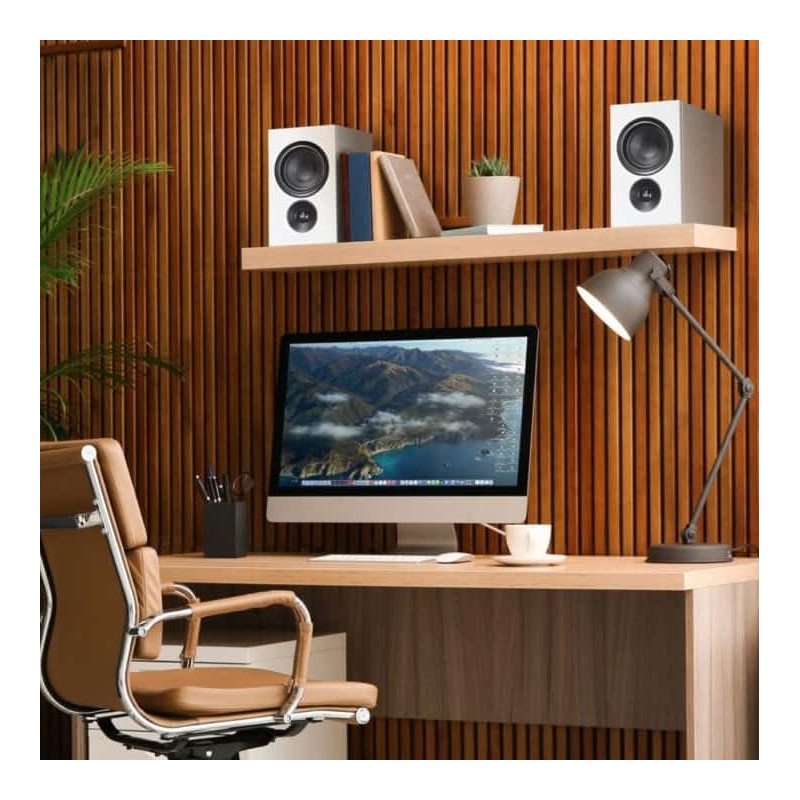 Con un diseño elegante y moderno, el Alpha iQ está disponible en acabados blanco satinado y negro satinado. En el interior de cada caja hay un controlador de medios-graves de polipropileno de 4″ con cesta de acero y envolvente de goma, y un tweeter de cúpula de aluminio de 0,75″ con imán de neodimio y amortiguación de ferrofluido.