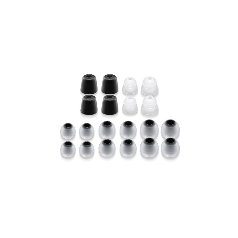 Selección de almohadillas de silicona de doble densidad, almohadillas de doble pestaña y de espuma viscoelástica.