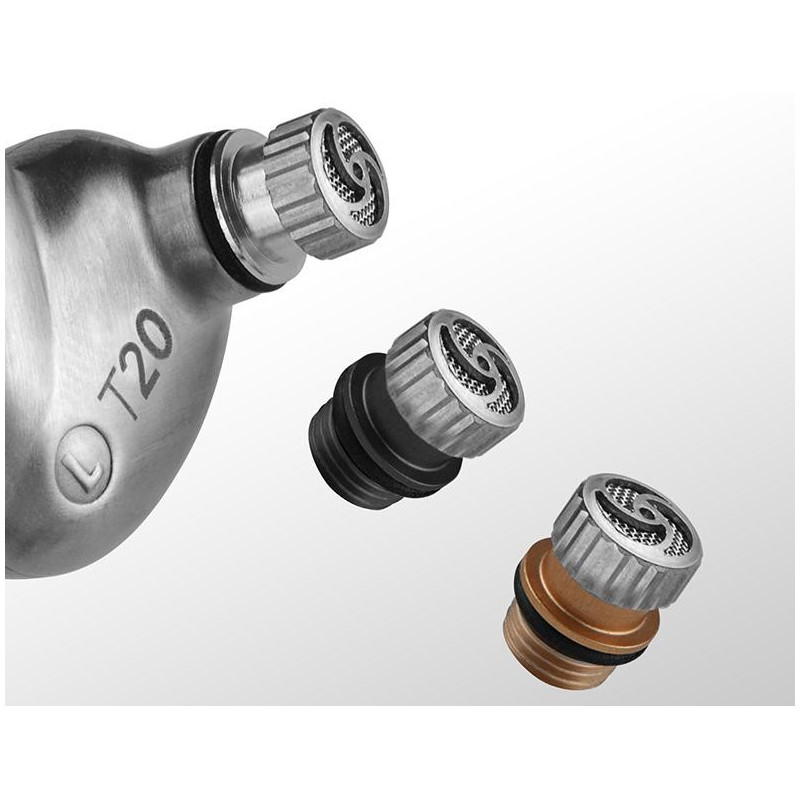 El transductor dinámico DualCoil™ del RHA T20 incopora una bobina móvil adicional situada en el interior de un imán circular. Cada bobina trabaja de forma independiente para reproducir una parte de la gama de frecuencias. Esta exclusiva configuración asegura prestaciones de gran eficiencia y una reproducción sonora absolutamente realista de cualquier género musical. El sistema de filtros sintonizados permite a los usuarios personalizar la curva de respuesta enfatizando las bandas de bajas frecuencias o las gamas de agudos.