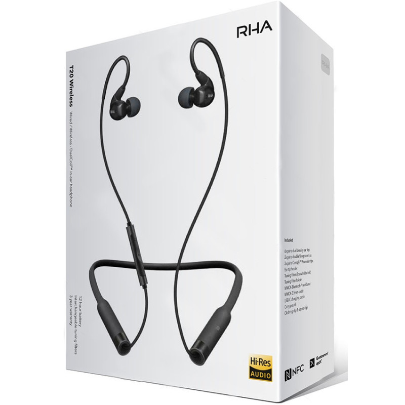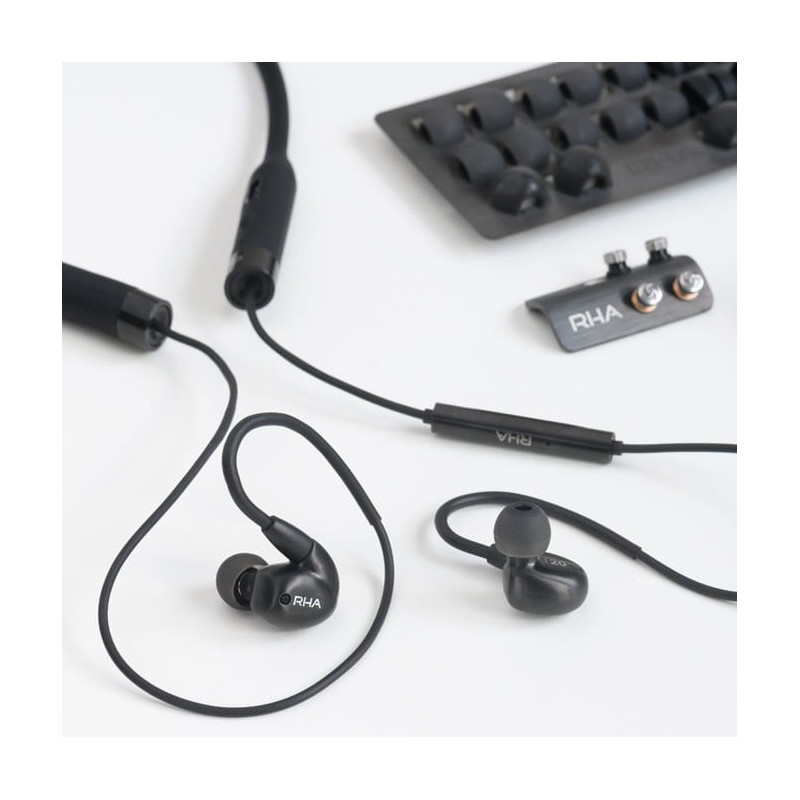 RHA T20 Wireless auriculares con cable desmontable y cable Bluetooth | Filtros intercambiables para tunear el sonido | Carcasas desmontables de acero inoxidable | Banda para el cuello Bluetooth de 12 horas con aptX™ de alta fidelidad | Cable de 3.5mm para audio de alta definición | Garantía de 3 años