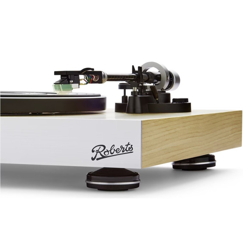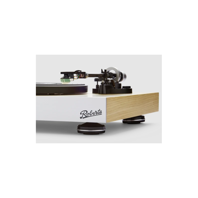 Como todos los Roberts, el Stylus Luxe está diseñado para que su aspecto sea tan bueno como su sonido. La placa frontal de aluminio cepillado, la tapa guardapolvo y la chapa de madera de roble claro real realzan el diseño contemporáneo general.