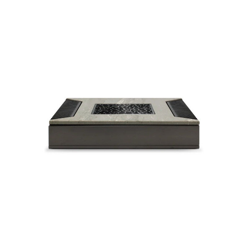 Carcasa superior a elegir entre 3 acabados: madera (nogal), metal (negro) y símil piedra (gris).