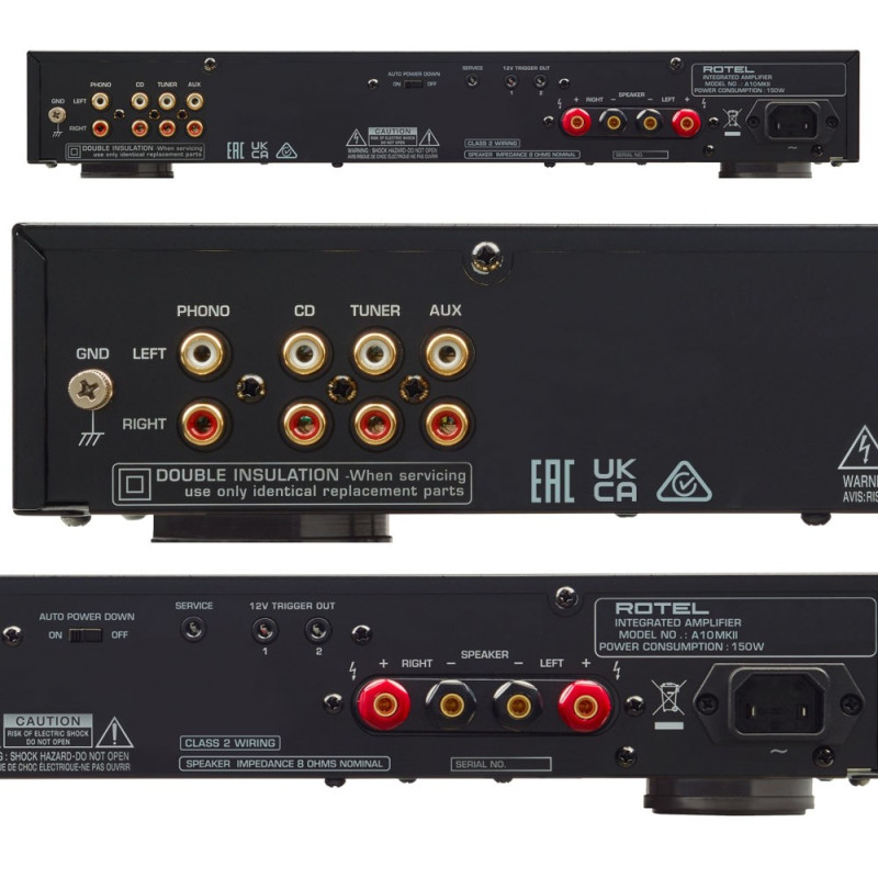 Construido alrededor de una fuente de alimentación lineal con un enorme transformador de potencia toroidal construido por Rotel, el A10MKII ofrece 50 vatios por canal de potencia de clase A/B autorizados en 8 ohmios, e incluso más en altavoces más desafiantes.