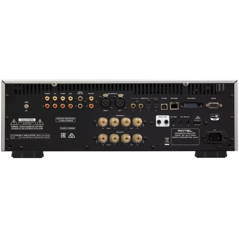 Las salidas de altavoz A o B seleccionables, puerto de datos RS232, Ethernet y trigger de 12 V garantizan una integración perfecta con los sistemas de control.