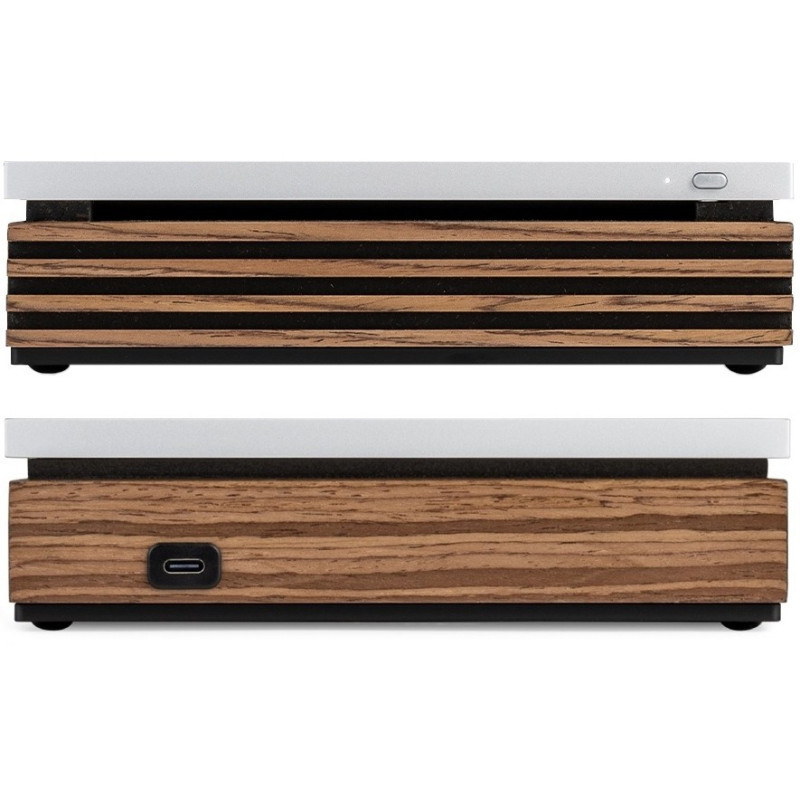 Acabado: parte superior de aluminio mecanizado con gabinete de nogal fundido.