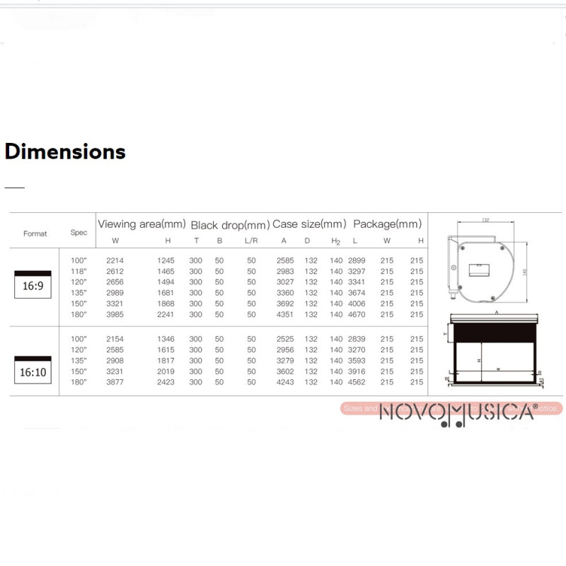 Pantalla motorizada, Formato 16:9, 180 pulgadas, Area Visible 399 x 241 CM