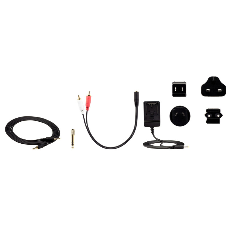 Transmisor Entrada de audio 3.5 mm estéreo Salida de audio RCA Consumo de energía < 0.5 W Fuente de poder 5 V DC , 500 mA relación señal-ruido 85 dBA (0.5 Vrms, 1kHz) Peso aprox. 204 g (sin baterías) Dimensiones 12.5 cm x 11.2 cm x 23.0 cm