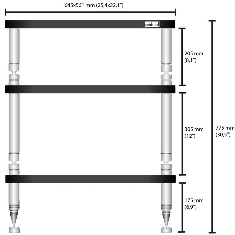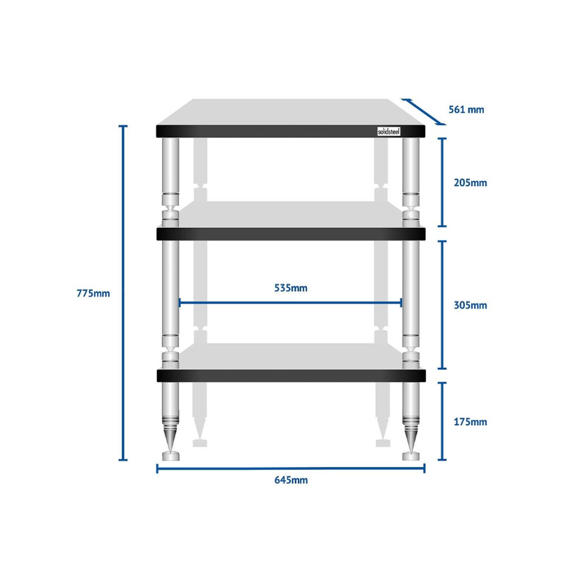 Solidsteel HF-3 Mueble de audio de 3 alturas | Estructura en acero inoxidable | Medidas Ancho 645 x Alto 775 x Fondo 651 mm