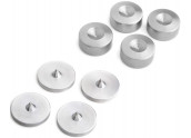La serie S5 es la expresión real de nuestra filosofía esencial. Es fruto de la unión entre la investigación técnica dedicada a la funcionalidad de nuestros productos y el cuidado absoluto del sentido estético que siempre se ha otorgado. Gracias a la prioridad asignada a la investigación cualitativa dedicada a lo largo de los años a los materiales ideales, todas las características principales de los productos anteriores, realizados mediante procesos de soldadura, se han fusionado con las más valiosas propiedades técnicas mejoradas a lo largo de los años gracias al desarrollo de la línea Hyperspike. Nace así una gama de equipos basilares caracterizados principalmente por la excelencia, calidad y sencillez de sus componentes. Los productos de la Serie S5 se distinguen por sus estantes diseñados y desacoplados en dos niveles. Los estantes principales, perforados en sus zonas centrales, se procesan con detalles incrustados de acero. Las estanterías secundarias, en cambio, mediante su colocación en nuestros nuevos conos de acero, generan el desacoplamiento diseñado para nuestro innovador sistema estudiado para el contraste de las vibraciones de los componentes. En particular, cuando se colocan en sus relativos discos de acero (PADS Serie S), nuestros tradicionales picos de acero descargan hacia el suelo el conjunto de vibraciones acumuladas de toda la estructura durante el uso normal. Esto funciona muy bien para proporcionar altos niveles de funcionalidad. Los tubos de aluminio, así como los de la serie S3, están rellenos de material amortiguador (no granulado) y a través de su sistema de sujeción seguro permiten a cualquiera ajustar el rack con alturas preferentes. En definitiva, la personalización se combina con la tecnología de producto descrita anteriormente, donde los usuarios siempre pueden ajustar la altura de las placas de las estanterías para disfrutar de un equipo técnico válido al servicio de sus instalaciones o sistemas.