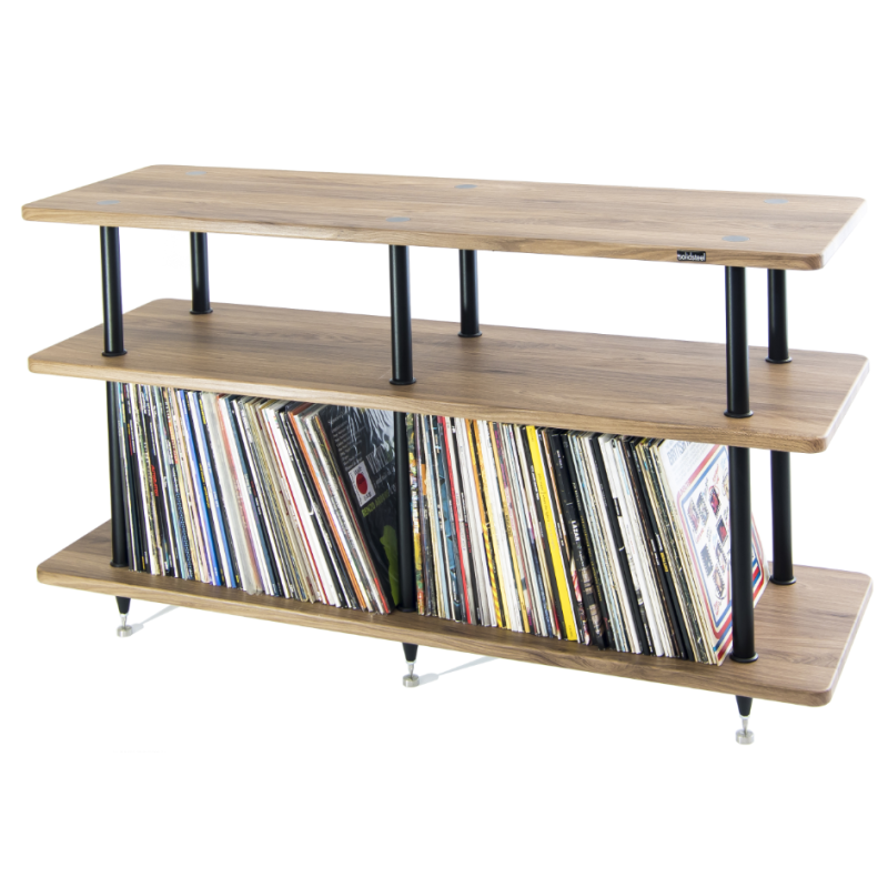Solidsteel VL3 Estantería para Vinilos y Rack HIFI | Estantes de madera MDF (22mm), laminado polimérico | Estante 120 kg probados | Terminales AVP de hierro tratado con zinc | Tubos aluminio pintado (anodizado) relleno con material amortiguador | Disponible en color Negro/Nogal