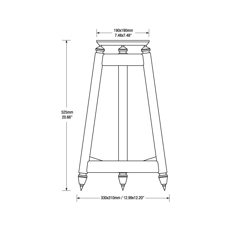 Dimensiones: Superficie Superior 190x190 mm. Inferior 330x310mm. Altura 525mm.