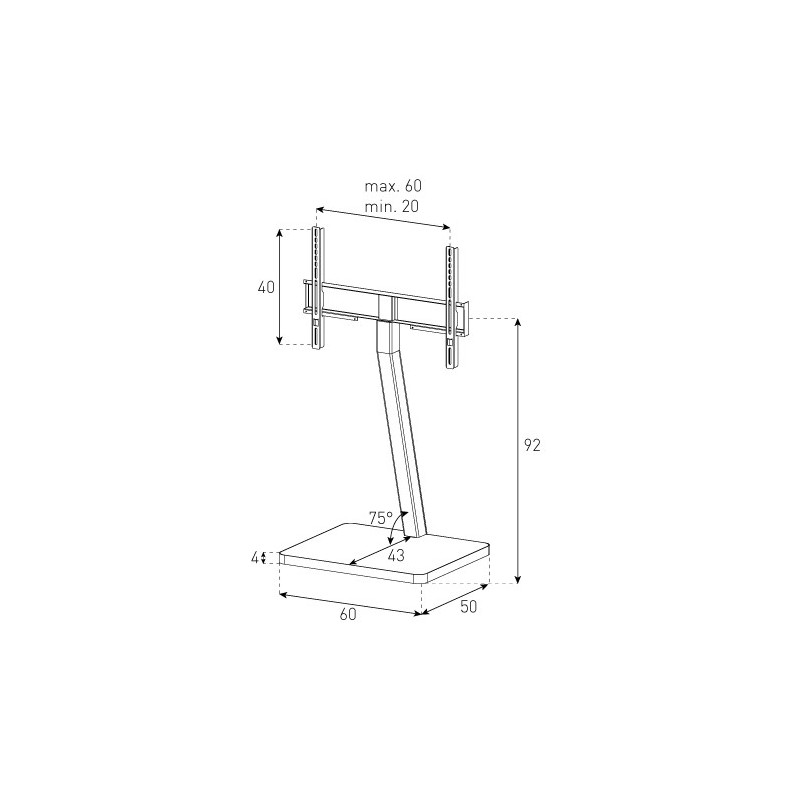Pena con soporte de TV de 32 a 50 pulgadas. Alto del soporte 92 cm. VESA 60 x 40
